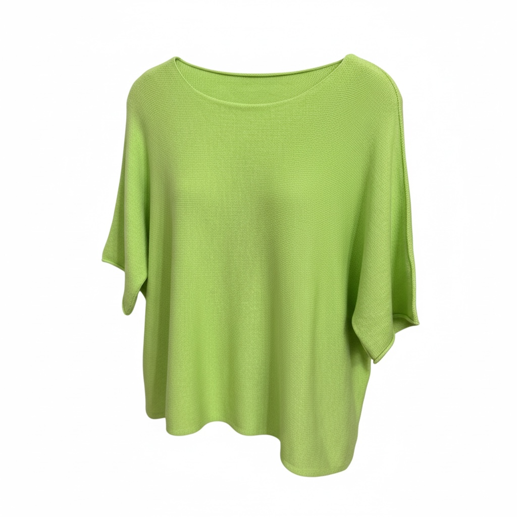 These soft, lightweight knit jumpers come in three beautiful colours: lime, baby blue, and pink. Designed with a relaxed fit and short sleeves, they offer an easy, flattering silhouette that’s perfect for layering or wearing on their own. The fabric has a smooth, slightly fluffy texture, giving each piece a cosy yet breathable feel.